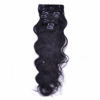 24" Off Black (#1b) 10PCS Wavy Clip In Brazilian Remy Hair Extensions